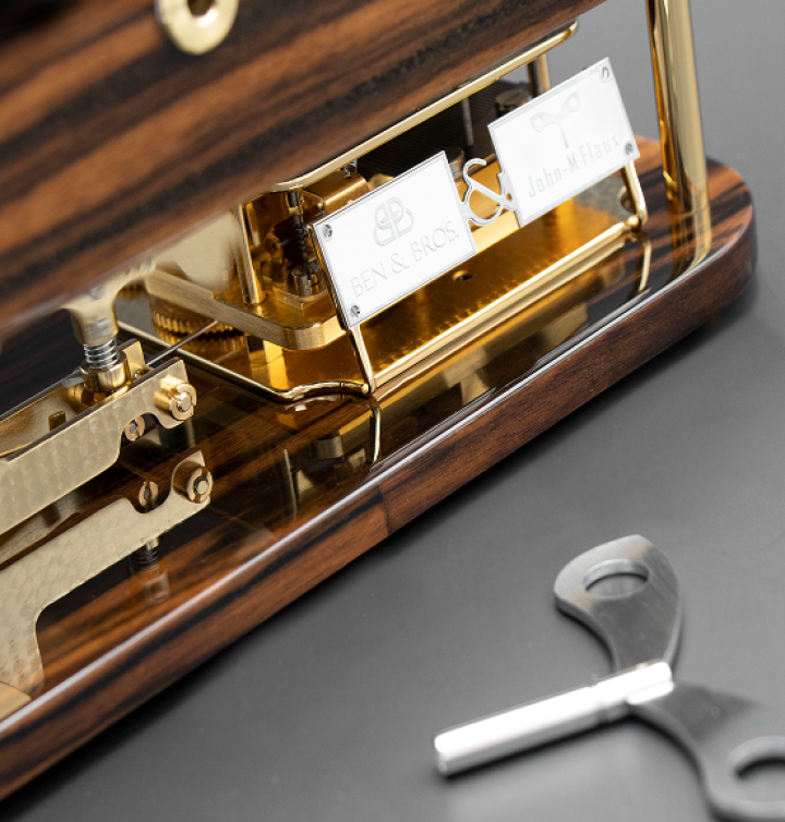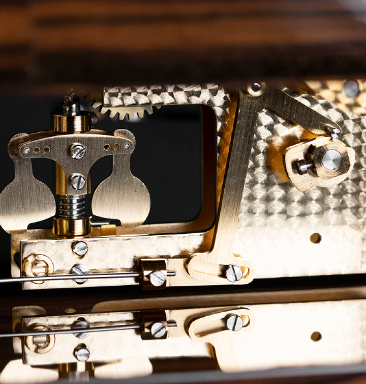 - Mécanisme : Laiton doré et acier inoxydable poli