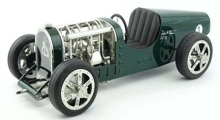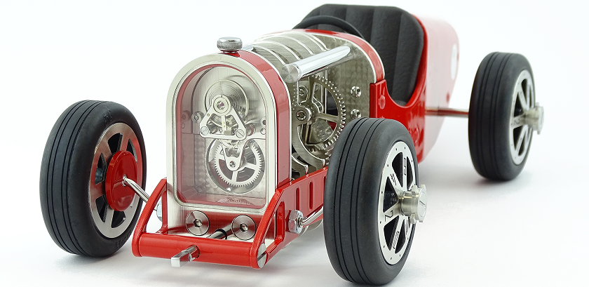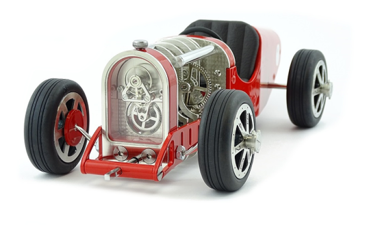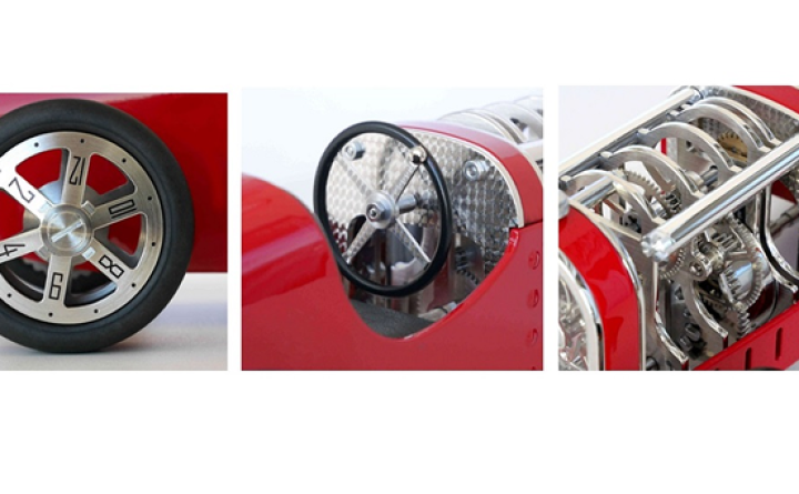 La Car Clock est une horloge mécanique avec un concept unique alliant les voitures de courses des années 30 à l’art horloger. Le design de chaque élément a été créé dans le but de marier l'esthétique et la technique automobile à celle de la philosophie horlogère.