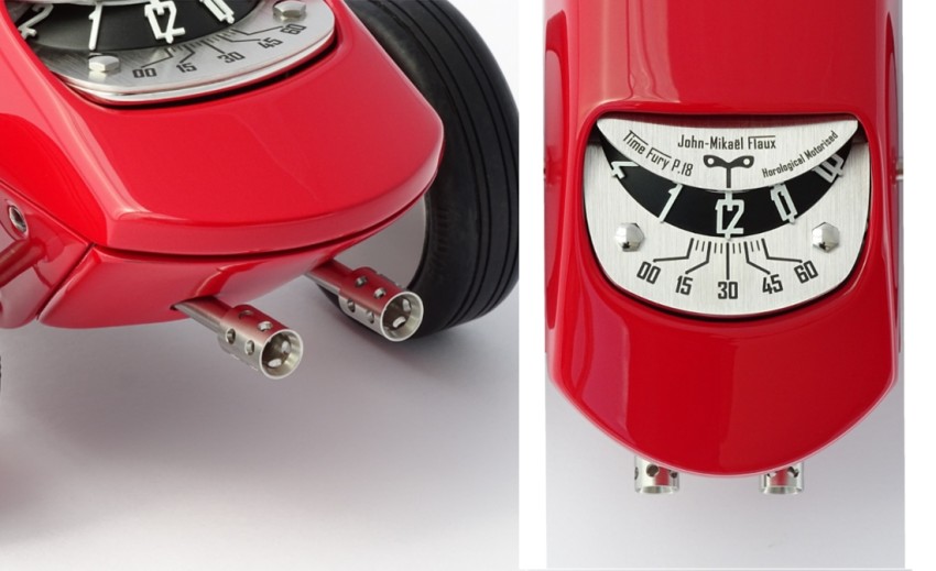 Conçue et fabriquée par John-Mikaël Flaux, la Time Fury nécessite 1 mois de fabrication "fait main" pour exécuter et assembler ses 256 pièces dans les règles de l'art horloger (finitions polissage, brossé, anglage, …etc).