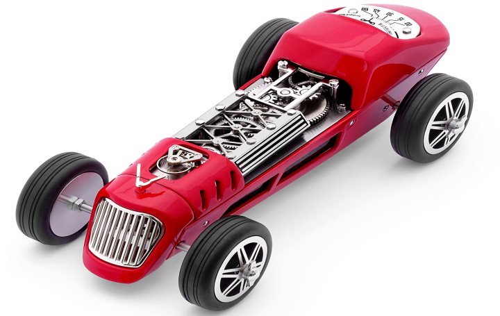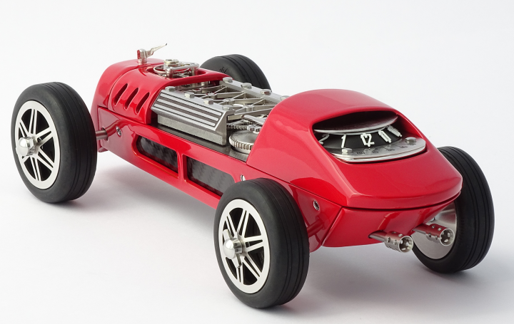 Est une horloge mécanique avec un concept unique (à l'image de son aînée la CAR CLOCK) alliant les voitures de course à l’art horloger. Le design de chaque élément a été créé dans le but de marier l'esthétique et la technique automobile à celle de la philosophie horlogère.